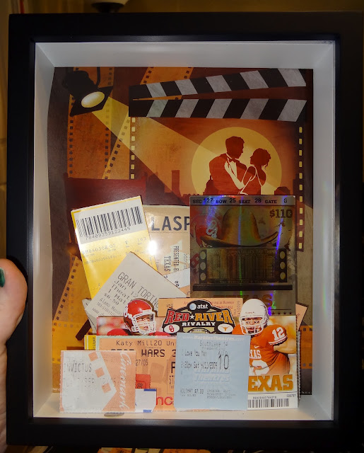 Today I took a break from nail designs (that's a lie, I just painted them a single color) and decided to do a DIY project that is actually simple. I've been collecting movie ticket stubs since middle school (a few have gotten lost along the way) and I kinda got tired of storing them in a little tin hidden from the world. This pin suggested making a shadow box for them all. Brilliant!